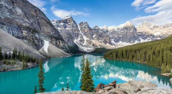 • Experience the lake’s famous turquoise glacier-fed waters surrounded by towering peaks.