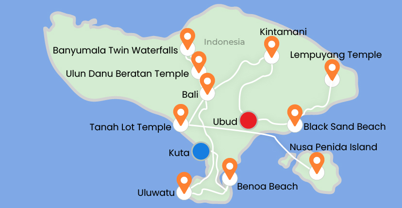 This Bali journey begins in Kuta after arrival at Ngurah Rai International Airport. Enjoy water sports at Benoa Beach and sunset at Uluwatu Temple with the Kecak and Fire Dance. Explore Ulun Danu Beratan Temple, Banyumala Twin Waterfalls, and Tanah Lot Temple. Visit Nusa Penida including Kelingking Beach and Crystal Bay. Continue to Ubud, seeing Mount Batur, Tegalalang Rice Terrace, Sacred Monkey Forest Sanctuary, Lempuyang Temple, and Bali’s Black Sand Beach before returning home.